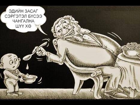 Парламентад үнэмлэхүй олонхи болж Засгийн газрыг дангаараа бүрдүүлж буй МАН төсвөөс авдаг санхүүжилтээ түр хойшлуулах шийдвэр гаргавал Ерөнхий сайдын хэлснээр ард түмэн ёстой жинхэнэ алга ташин хүлээж авна. АН, УИХ-д ганцхан суудалтай МАХН ч үүнийг эсэргүүцэхгүй биз. Хямралыг хүүхдүүд нь халамжаа хасуулж давах гэж байхад намууд нь төсвийн дэмжлэгээр өнгөрөөх нь шударга биш шүү дээ. Тиймээс ч энэ санаачилгыг МАН түрүүлж гаргаж улс төрийн эр зоригоо харуулах ёстой байх. УИХ-д 65 суудалтай, үнэмлэхүй олонхи болсон учраас кнопны олноор тэд л шийдэж чадна. Угаасаа намуудад олгох санхүүжилт гэгдэж байгаа 2.1 тэрбум төгрөгийн ихэнх нь өнгөрсөн сонгуулиар ялалт байгуулж УИХ-д 65 суудалтай болсон МАН-д л илүүтэй ногдоно. Тиймээс УИХ дахь МАН-ын бүлэг намуудын санхүүжилтэд гэж төсөвт тусгагдсан энэхүү 2.1 тэрбум төгрөгөөс бүр биш юмаа гэхэд түр татгалзаач. Яг л хүүхдүүд шиг.
