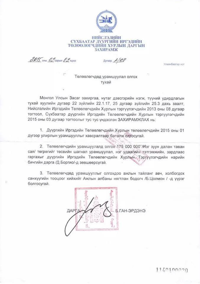 Сүхбаатар дүүргийн Иргэдийн төлөөлөгч 35 хүн тус бүрт 4.5 сая төгрөг урамшуулал нэрээр тараажээ. Дүүргийн төлөөлөгч болох чинь ийм л ашигтай юм байхдаа...